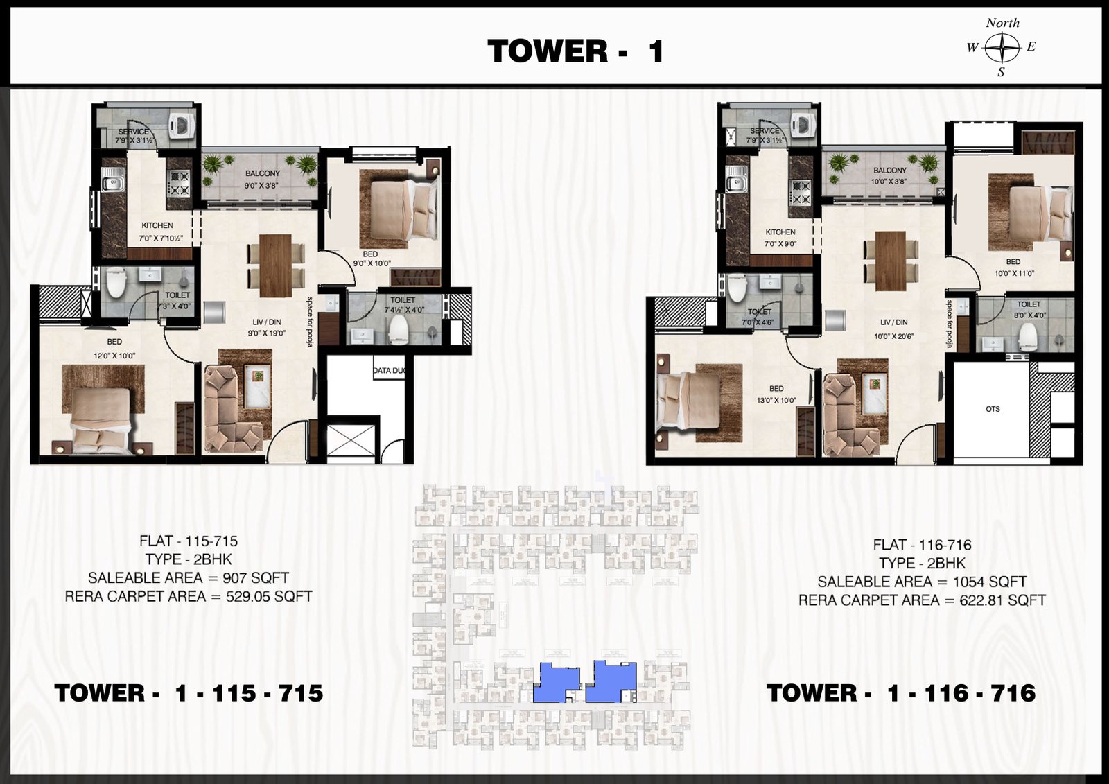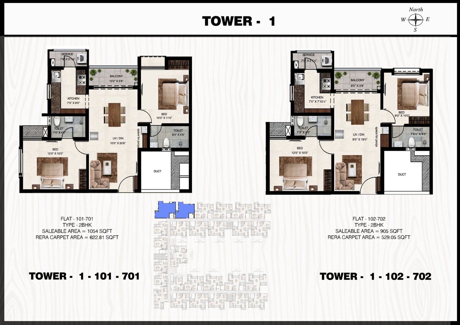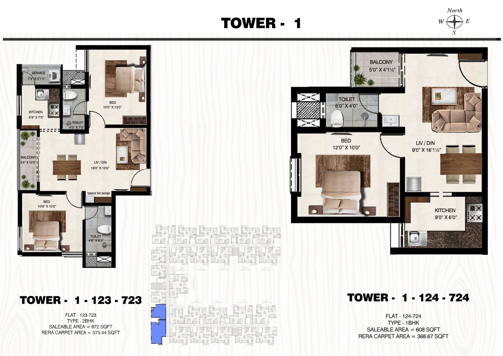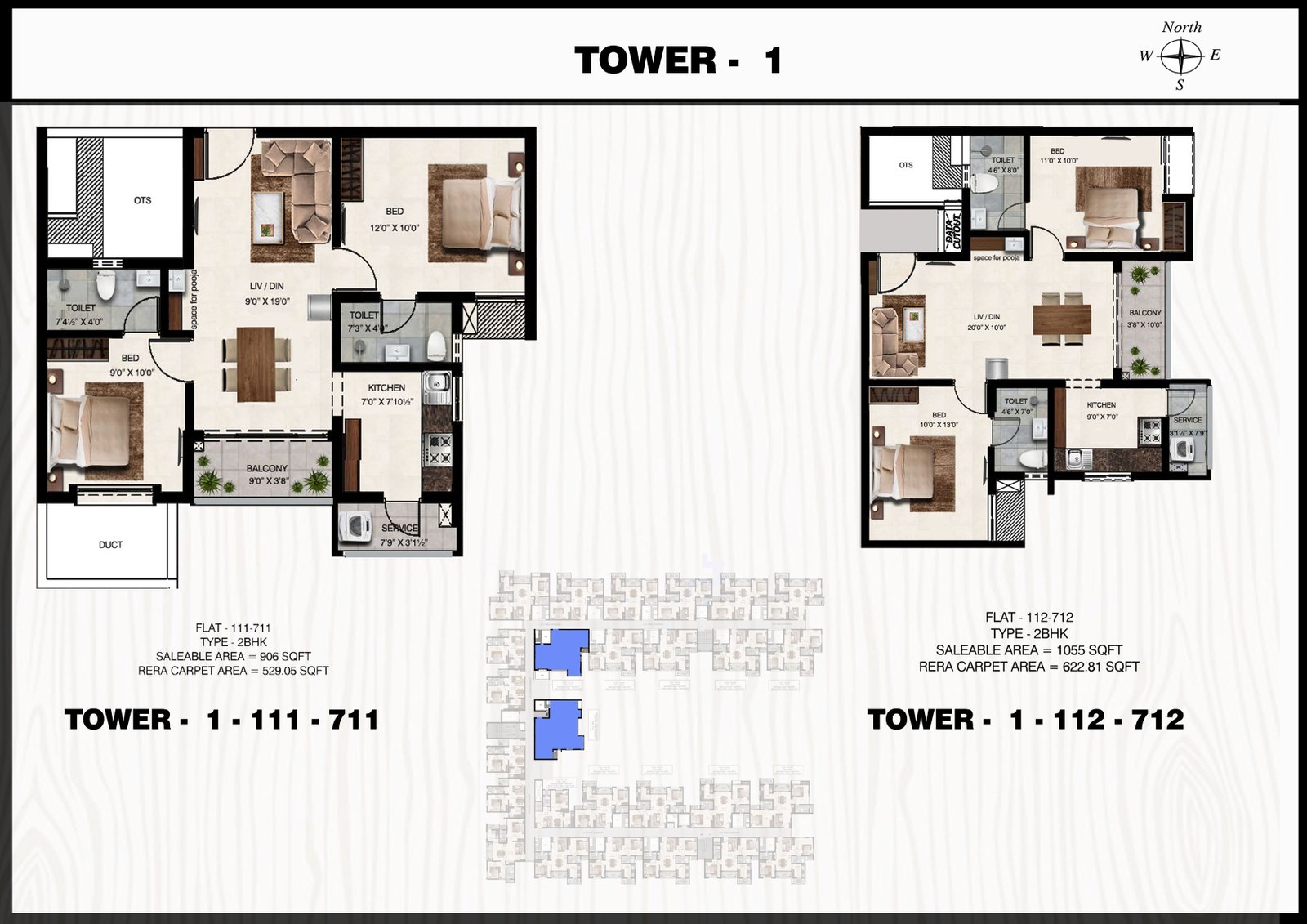1 & 2 BHK Plan Tower 1