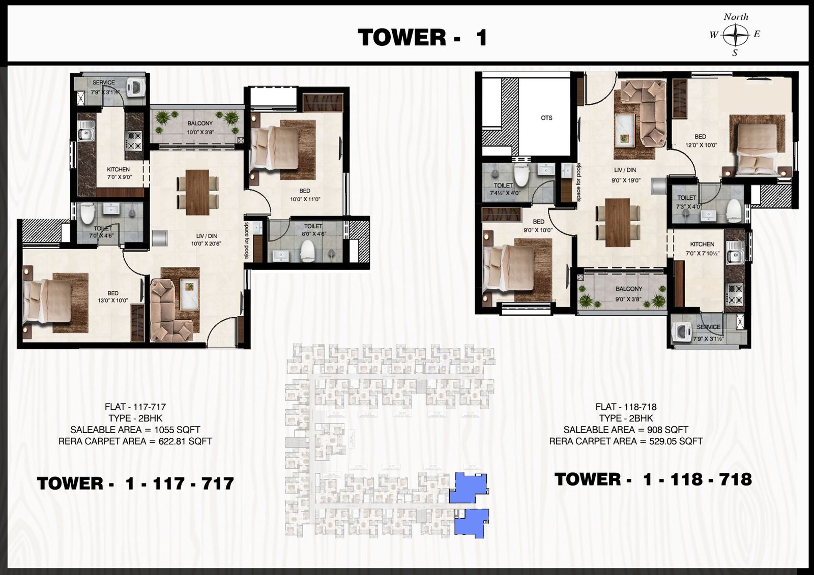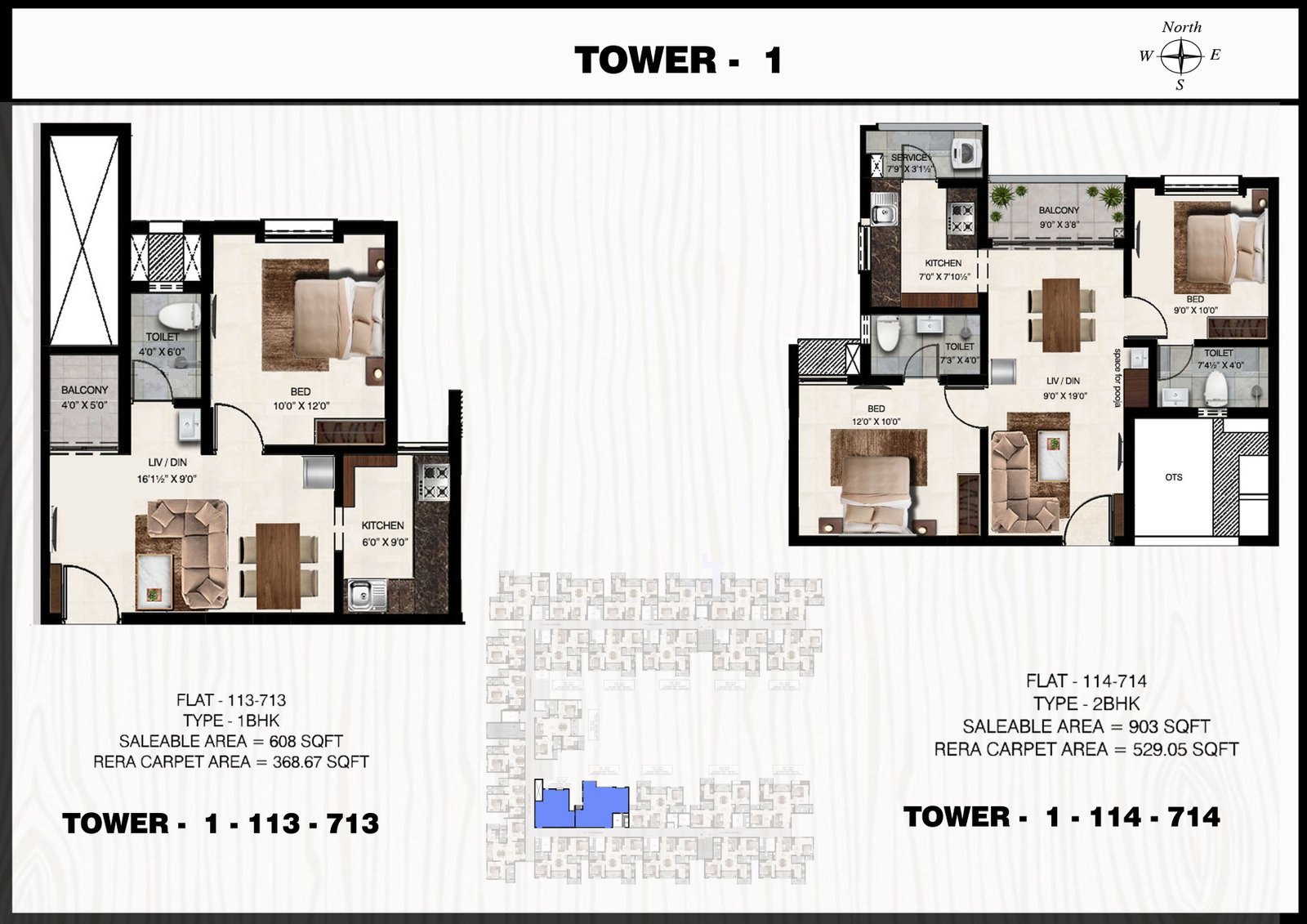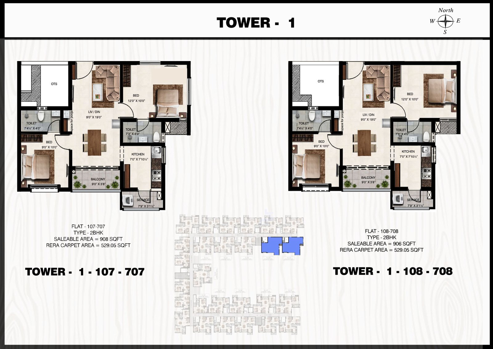 1 & 2 BHK Plan Tower 1