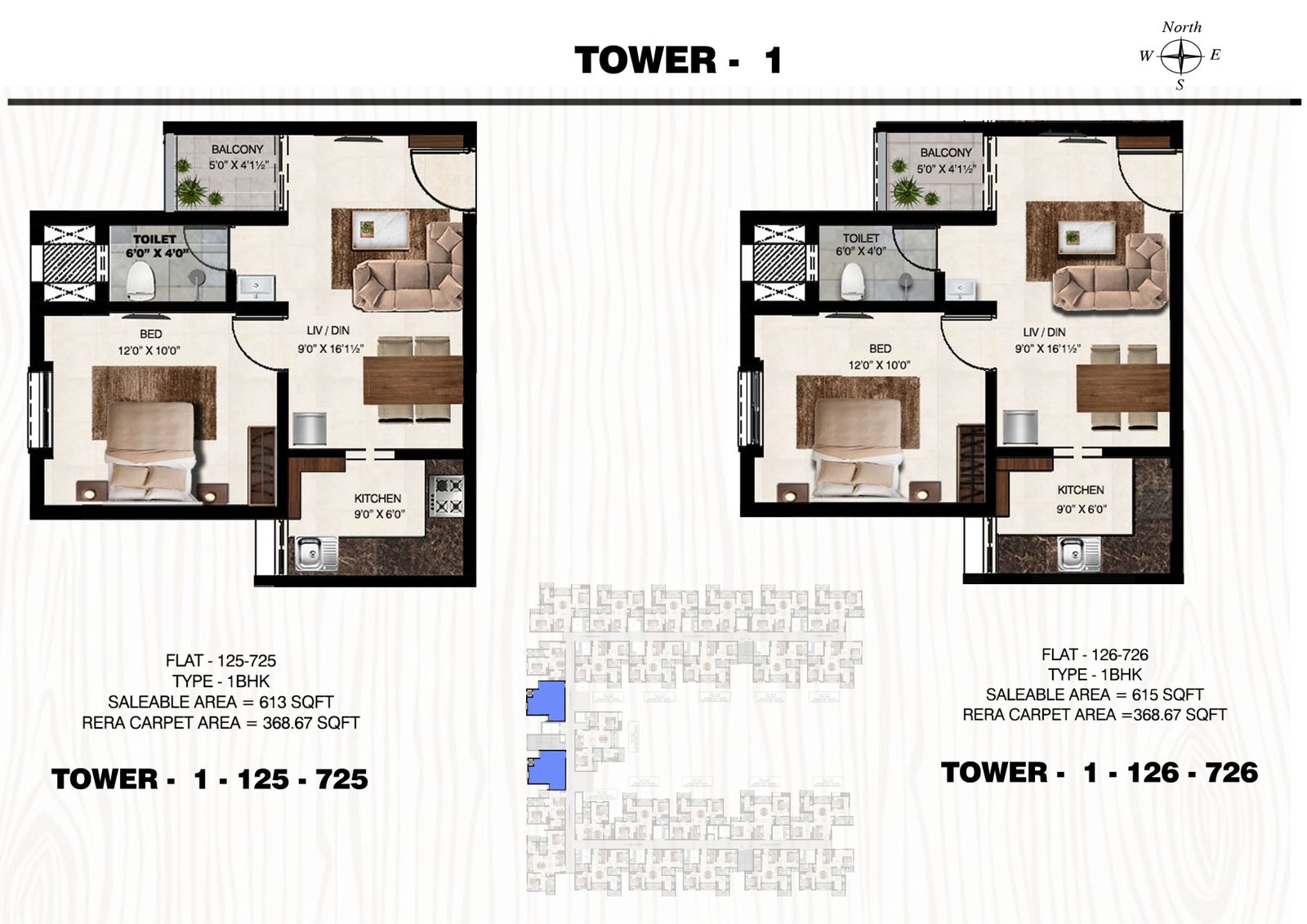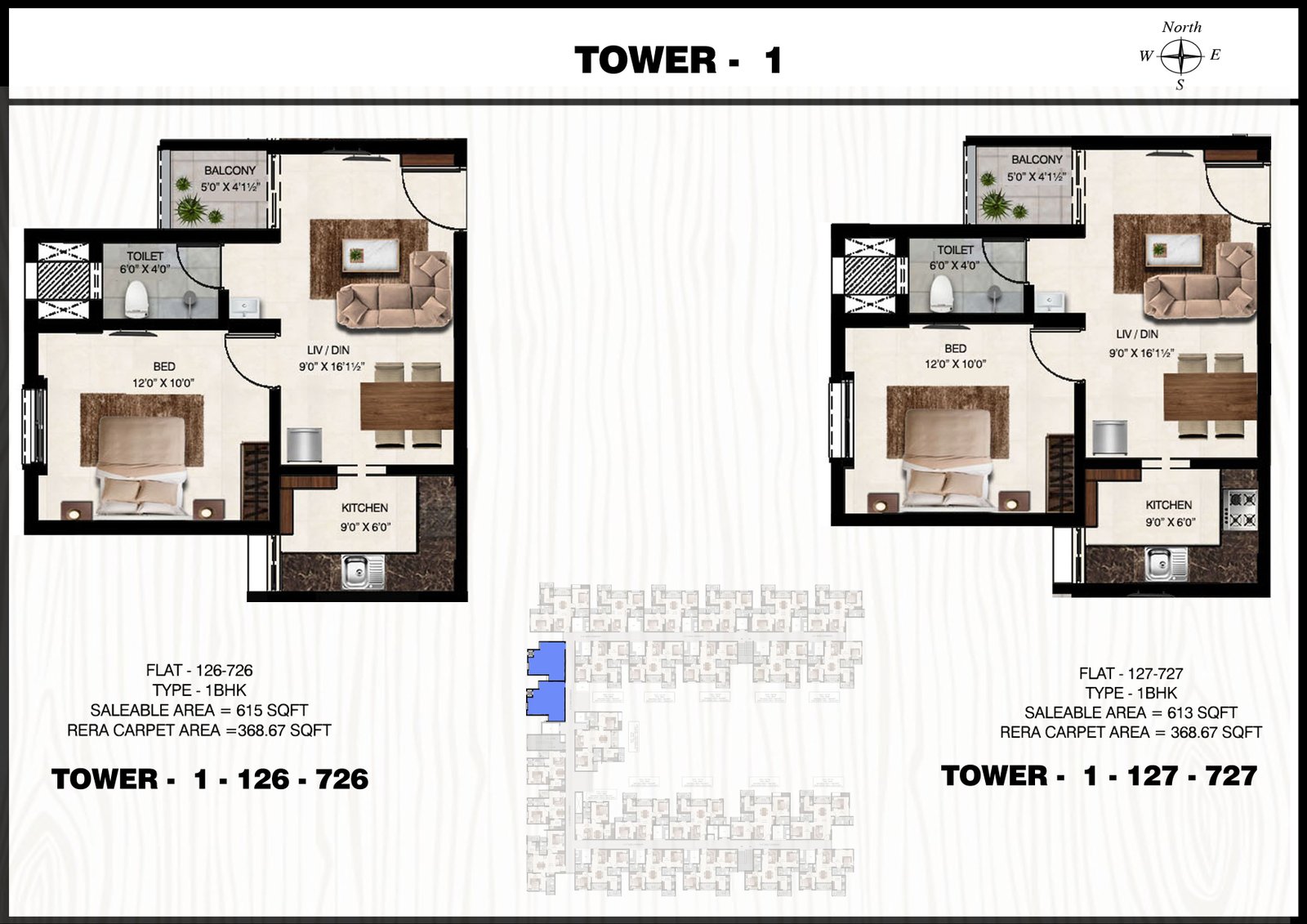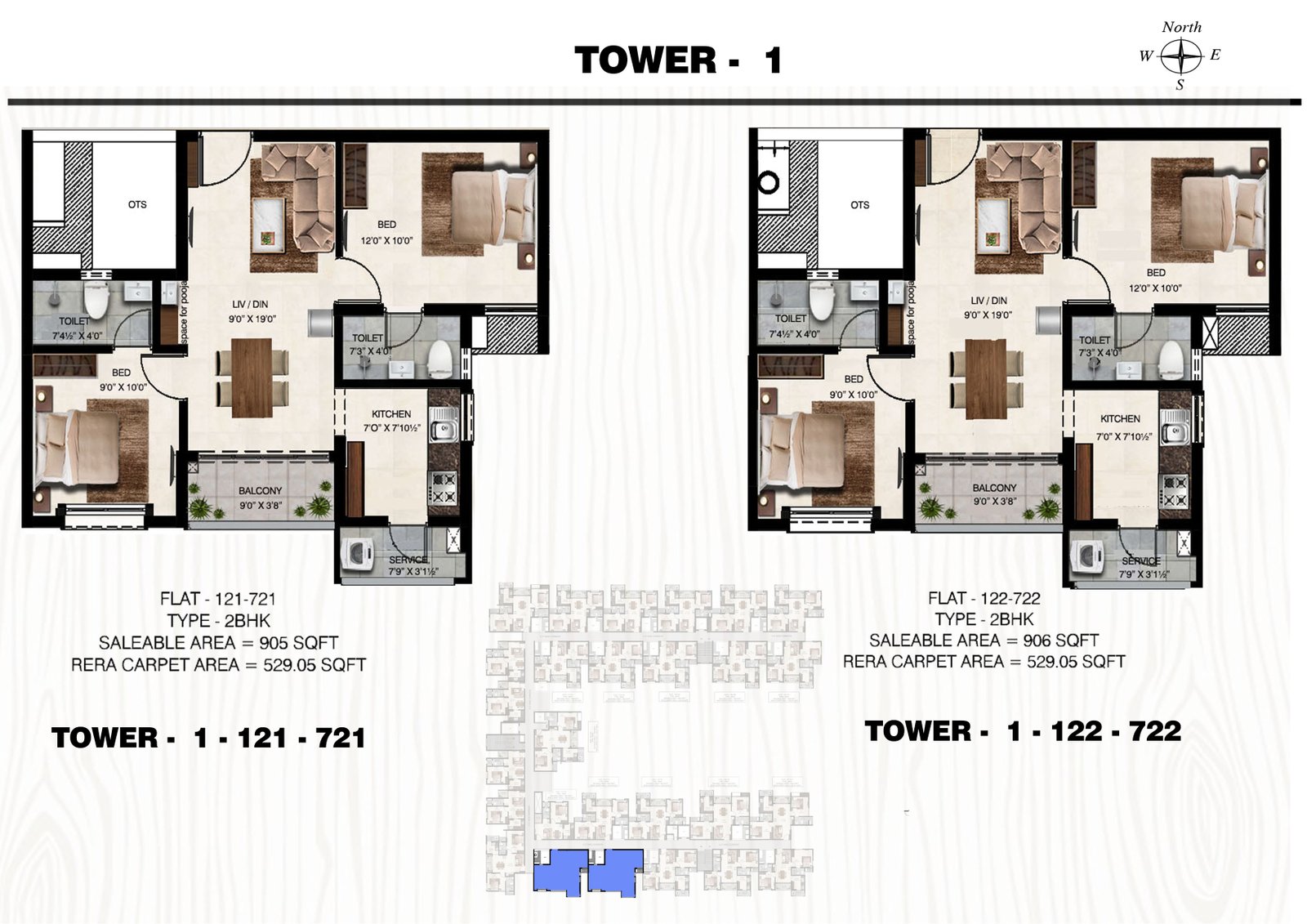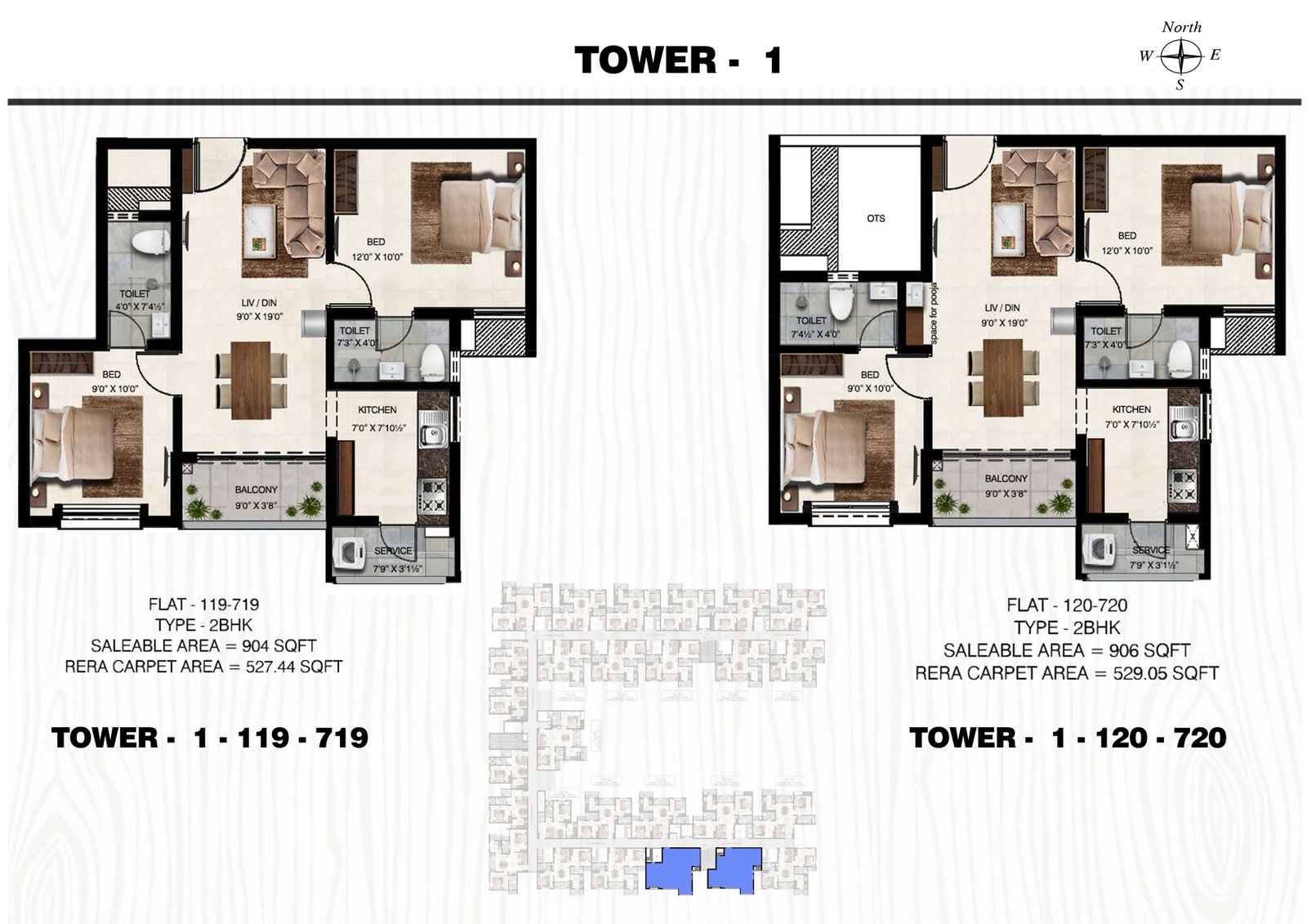 1 & 2 BHK Plan Tower 1