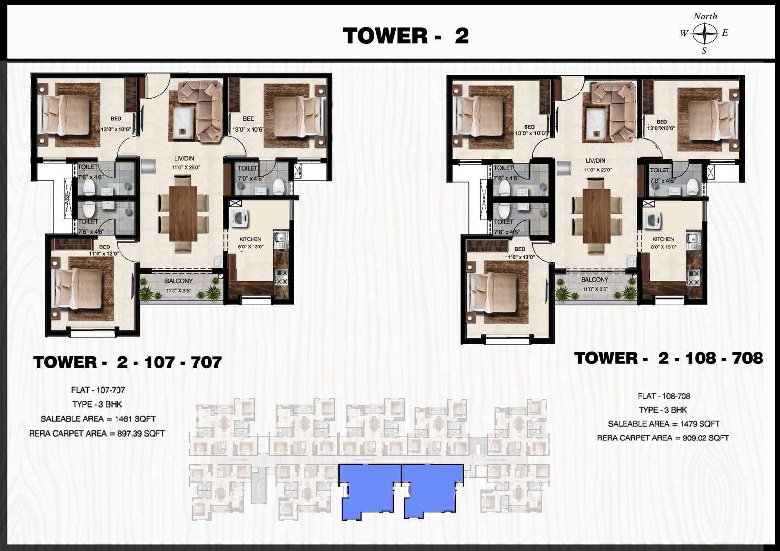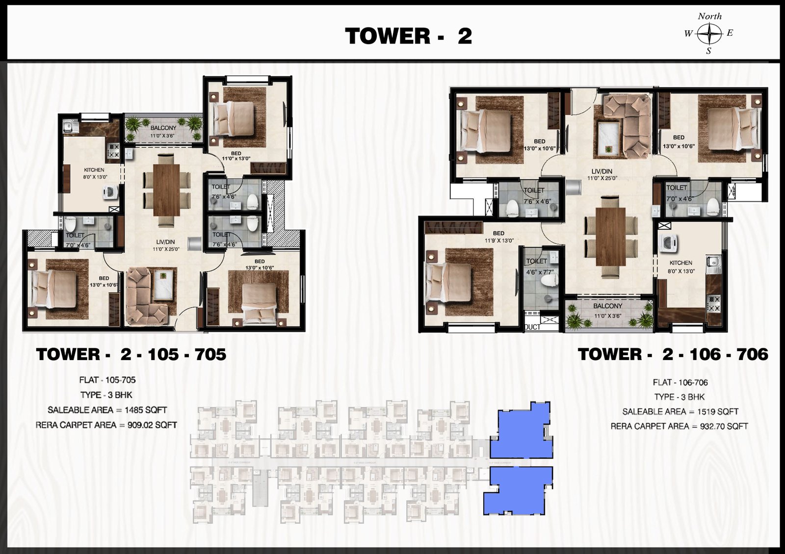 3 BHK Plan Tower 2