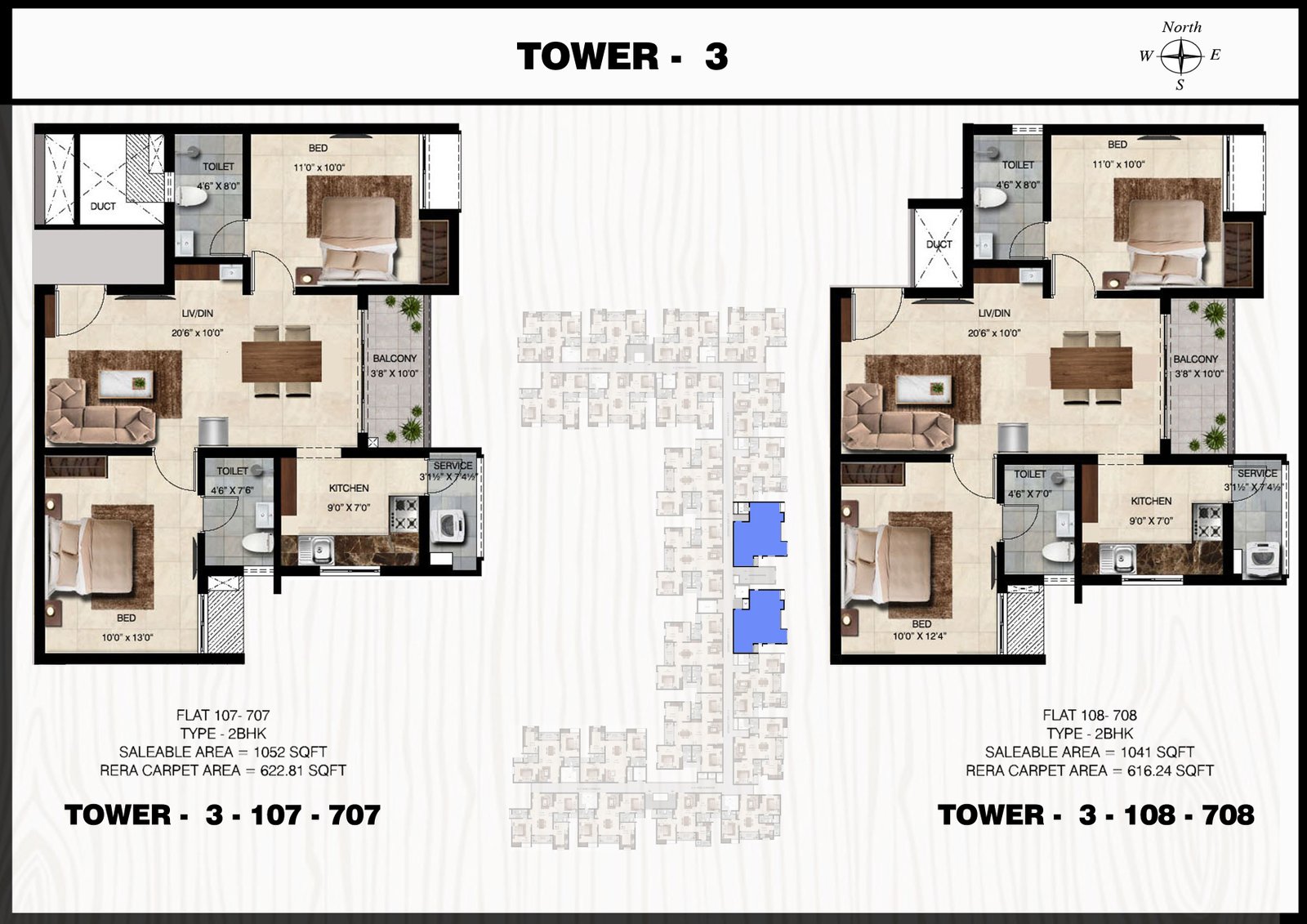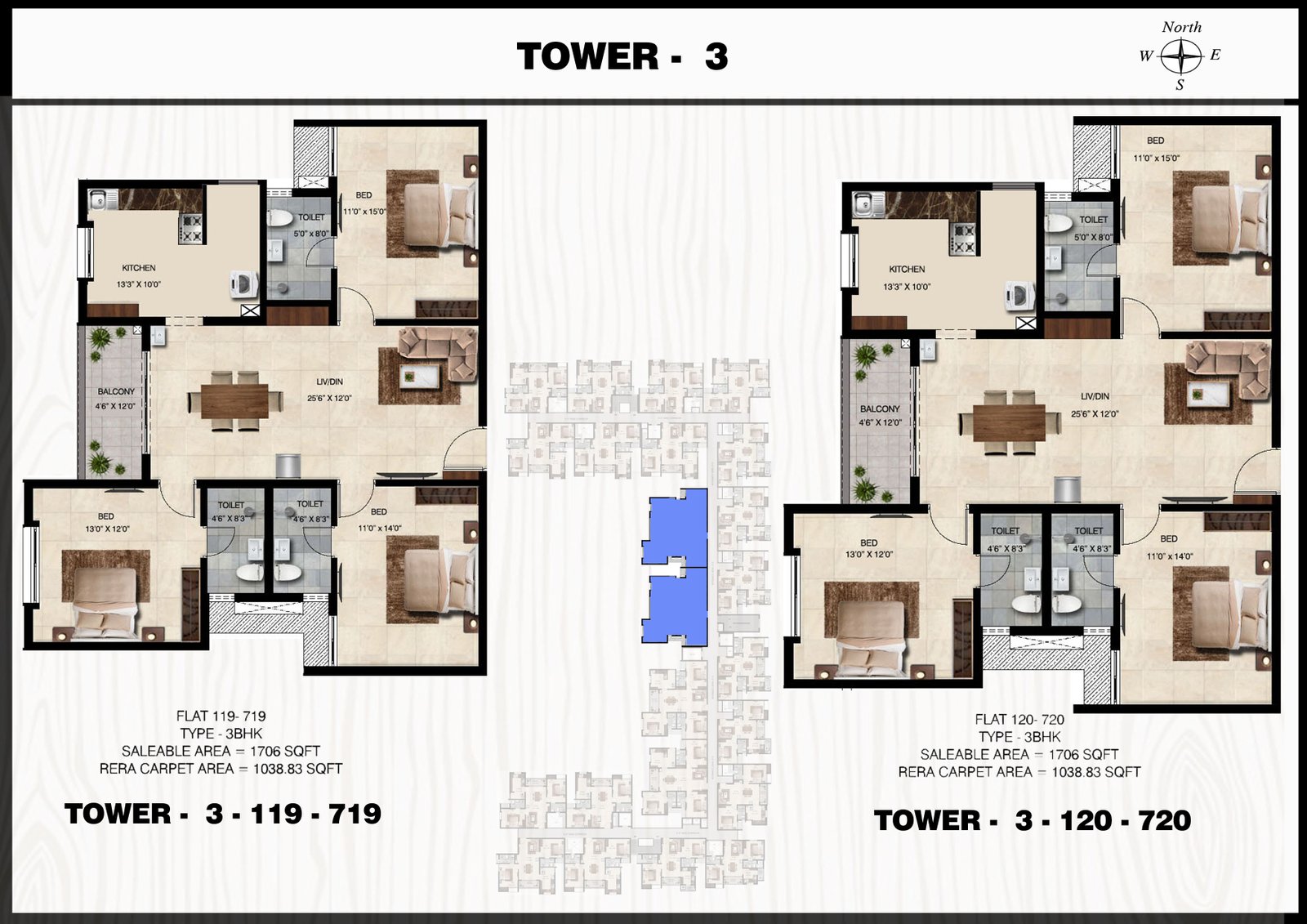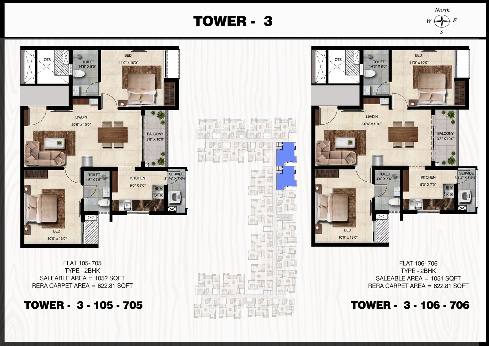 3 BHK Tower 3 Plan